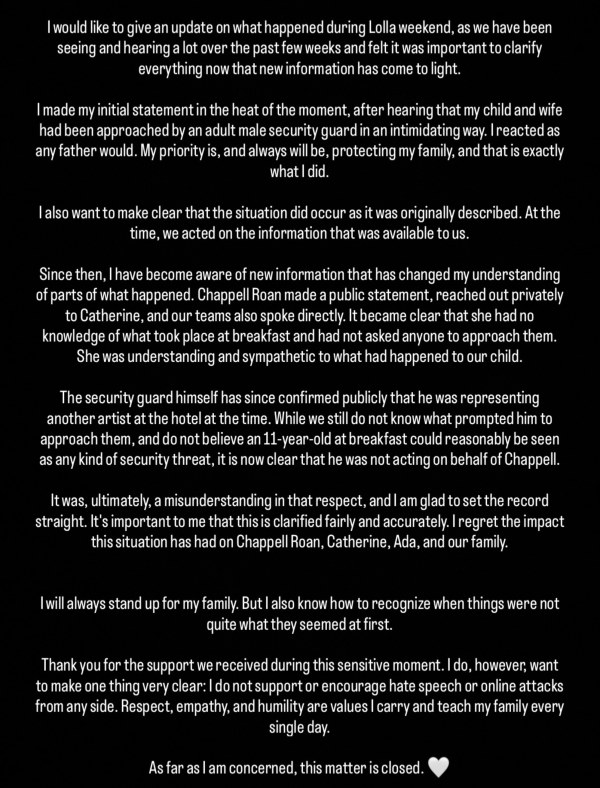 Chappell Roan has been cleared of blame over an incident between footballer Jorginho’s step-daughter and a security guard in Brazil last month. In late March, the sportsman claimed on Instagram that his daughter saw the singer at their hotel in São Paulo, which they were staying at for Lollapaloo...